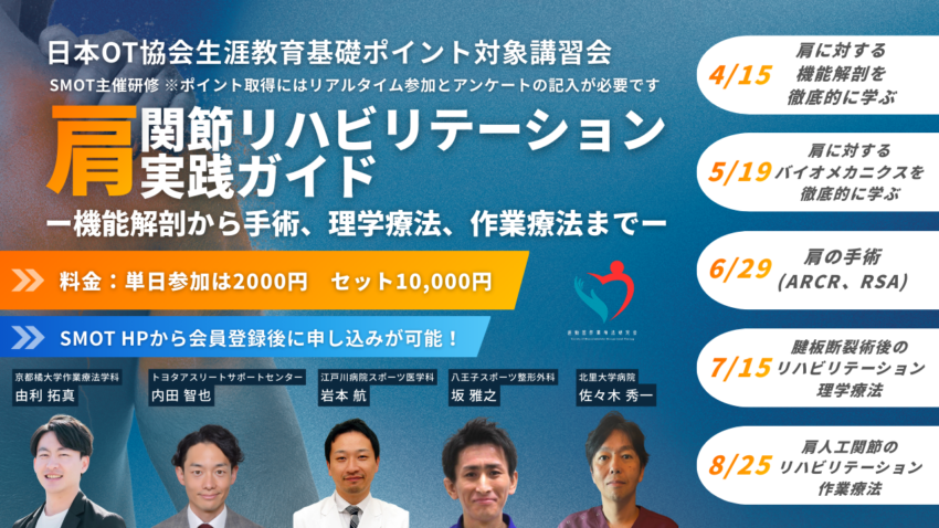 肩関節疾患は臨床でも頻度の高い疾患であり、機能解剖から手術、そして術後リハビリテーションまでを体系的に学べる大変貴重な機会です。