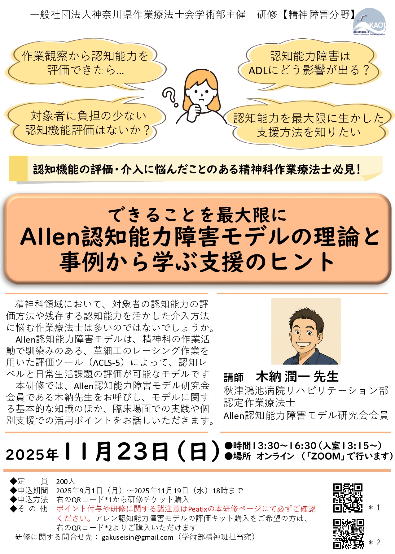 一般社団法人神奈川県作業療法士会学術部主催研修【精神障害分野】
