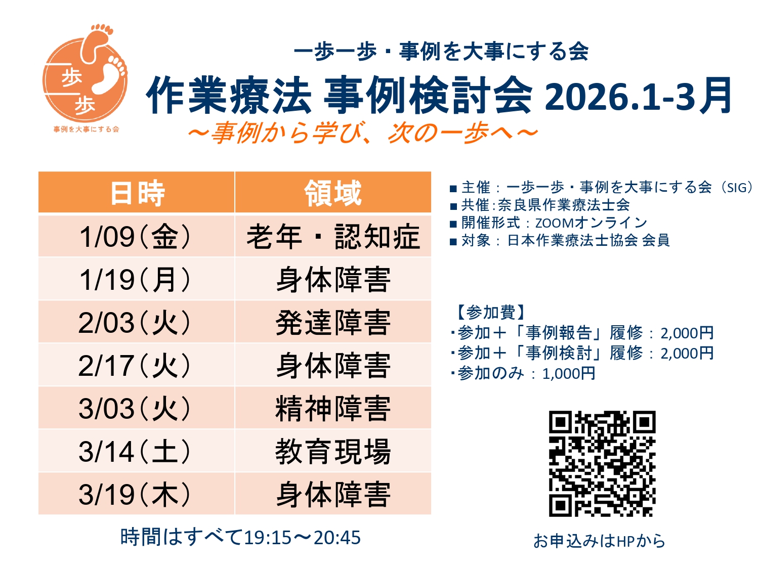 | 参加費 | ・参加+「事例報告」履修 2,000円