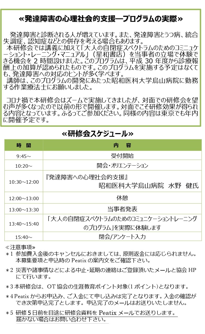 精神科作業療法協会 第54回作業療法研修会