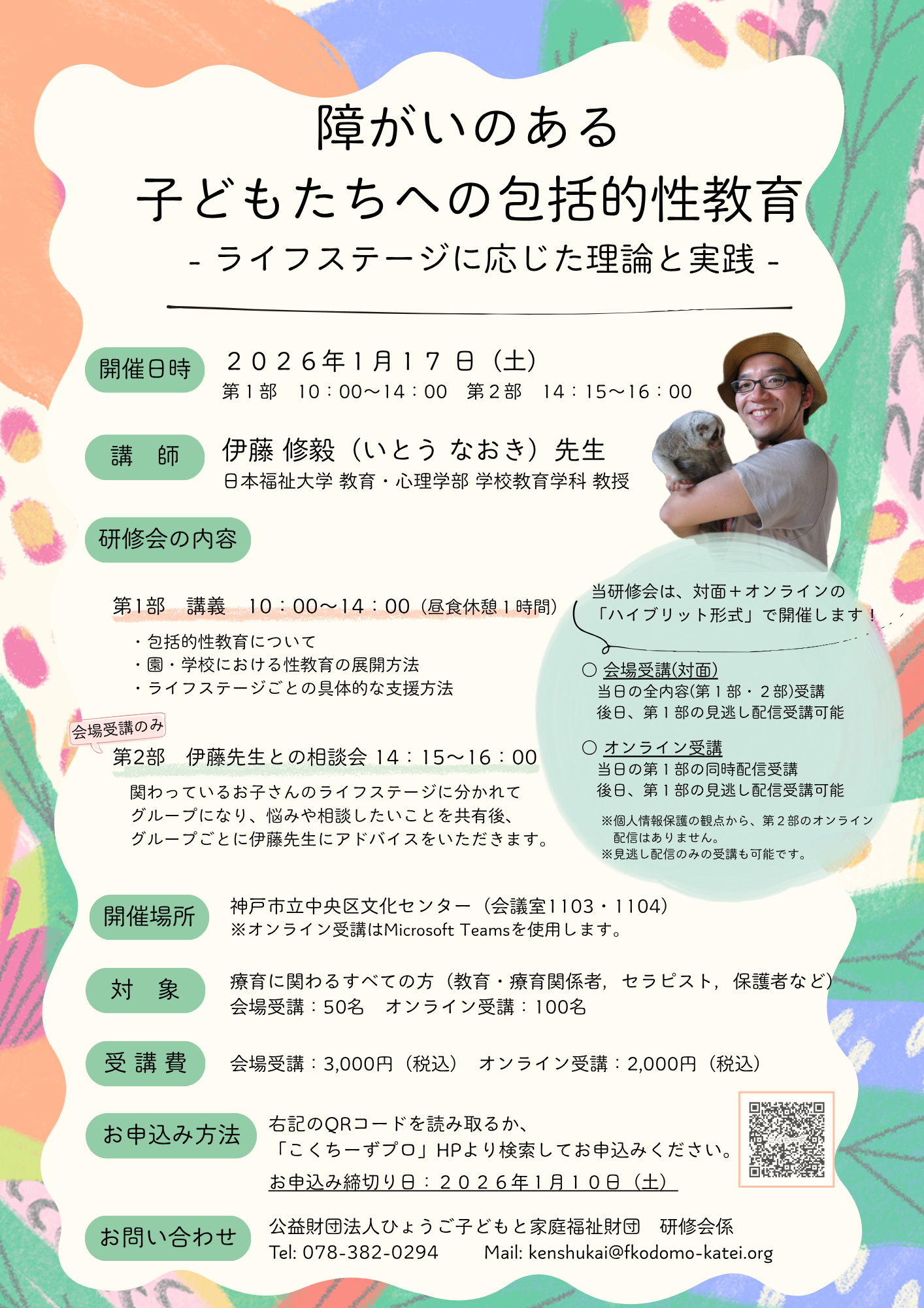 講師には、日本福祉大学教授の伊藤修毅先生をお迎えし、昨年度とはまた違った視点で障がいがあるお子さんの性教育の知識を深めます。